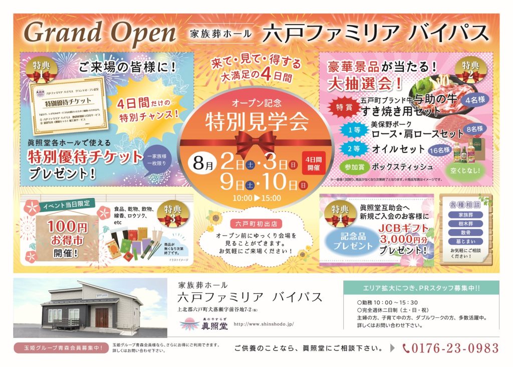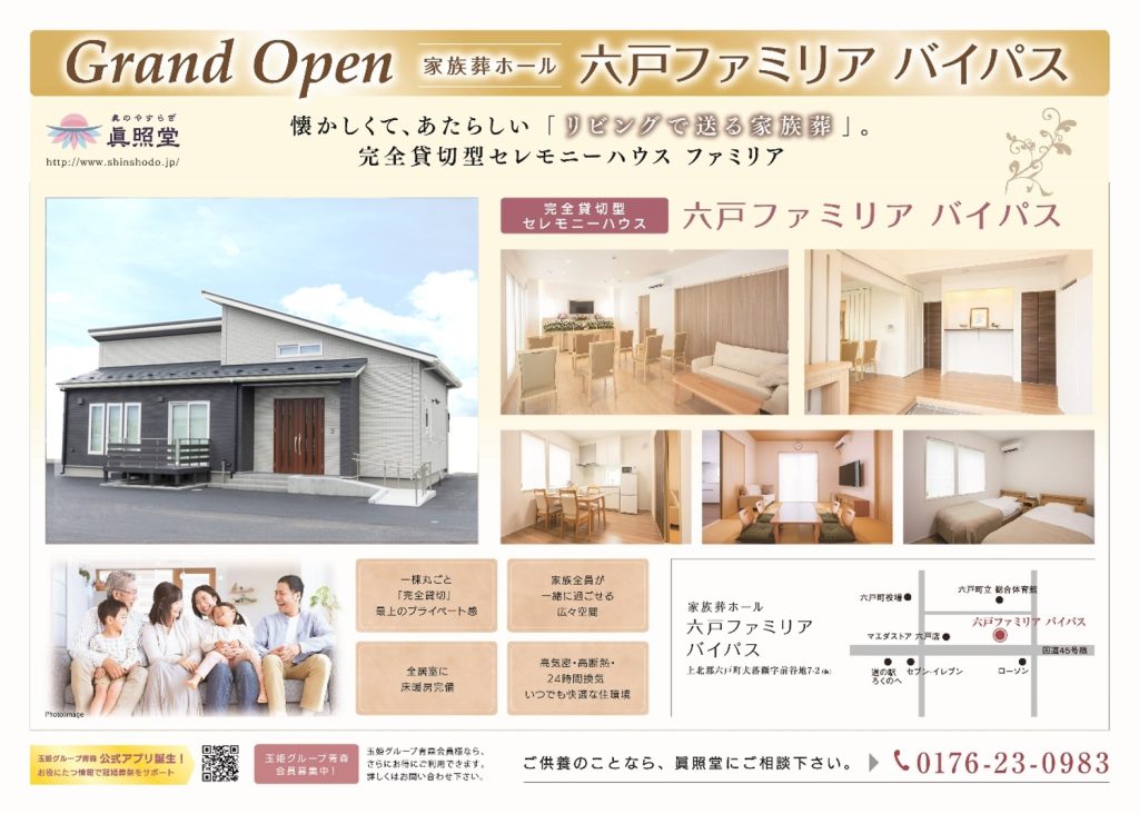 家族葬ホール「六戸ファミリアバイパス」をオープンいたします。